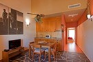 Apartamento T1, composto por um quartos, uma casa de banho e a sala onde está exposto um maço, usado para calcar azeitona na tulha, um caldeiro de metal, que pode ver semelhante no painel e diversas sacas.